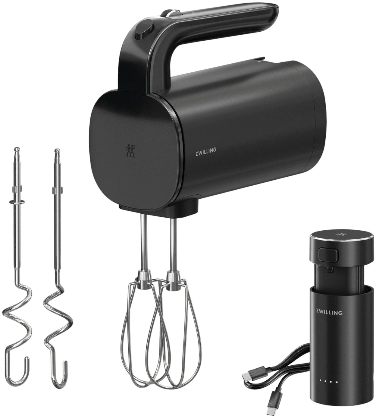 De draadloze handmixer ZWILLING XTEND biedt u maximale bewegingsvrijheid in de keuken, zonder in te leveren op prestaties. Deze accumixer starterset levert dezelfde krachtige prestaties als een conventionele mixer met snoer, maar dan zonder de beperkingen van snoeren en stopcontacten. Met dit veelzijdige apparaat kunt u overal in de keuken werken – of zelfs mee naar buiten nemen. Of u nu zwaar deeg wilt kneden, brooddeeg wilt opkloppen of stijfgeklopte eiwitten wilt maken – deze mixer werkt moeiteloos. De drie snelheidsniveaus geven u nauwkeurige controle over elke werkstap, zodat u de intensiteit altijd kunt aanpassen aan de betreffende taak. Het kneden gaat in recordtijd en de consistentie is elke keer perfect. De accu is compatibel met de gehele ZWILLING XTEND accuserie. Dit betekent dat u dezelfde accu kunt gebruiken voor al uw draadloze ZWILLING apparaten. De meegeleverde compacte oplader zorgt voor snel opladen, zodat u altijd klaar bent voor uw volgende kookproject.De geïntegreerde powerbankfunctie van de oplader is bijzonder praktisch. Hierdoor kunt u andere apparaten zoals smartphones of tablets opladen wanneer de batterij niet nodig is voor keukenapparatuur. Het vervangen van de batterij is ongelooflijk eenvoudig: met een simpele handbeweging kunt u de batterij verwisselen en ongestoord verder werken. Met een extra accu verdubbelt u de gebruiksduur en kunt u ongestoord koken.