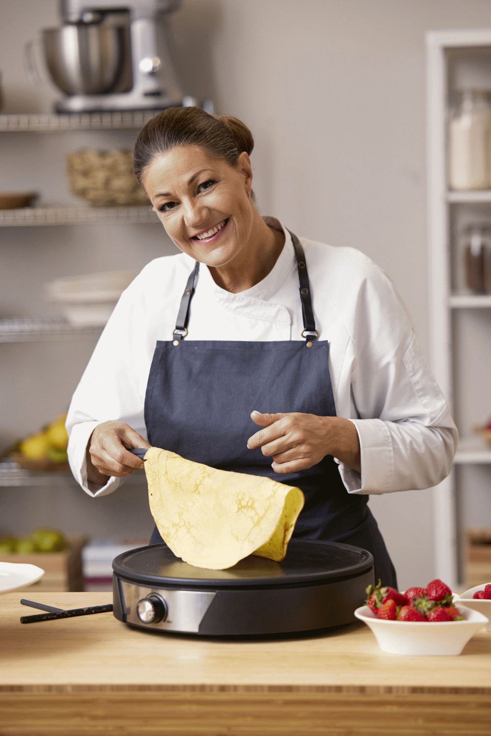 De krachtige 1500 Watt motor zorgt voor snelle opwarming, waardoor je niet lang hoeft te wachten voordat je familie kan genieten van vers gebakken pannenkoeken bij de brunch, als dessert of tijdens het avondeten.