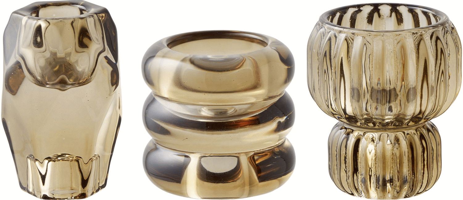 Met deze set van drie elegante kandelaars in rookglas voeg je direct een verfijnde en eigentijdse uitstraling toe aan elke ruimte in jouw interieur. De kandelaars zijn vervaardigd uit glas in een warme smoked bruintinten, waardoor ze een uitnodigende sfeer creëren die naadloos aansluit bij zowel moderne als klassieke woonconcepten. De gerookte afwerking geeft deze kandelaars een exclusief karakter: het licht van de kaarsen filtert door het getinte materiaal en produceert een zachte, gedempte gloed die perfect is voor gezellige momenten thuis, of je nu geniet van een rustige avond voor jezelf of een feestelijke bijeenkomst organiseert.House Nordic staat bekend om producten die functioneel design combineren met esthetische aantrekkingskracht, en deze kandelaars vormen daarop geen uitzondering. Het glasmateriaal is stevig en zorgt voor een prettig gewicht en stabiliteit, terwijl de smoked bruintint uitstekend harmoniëert met diverse kleurenschema's en materialen—van lichte Scandinavische houtoppervlakken tot donkerdere, meer dramatische interieurs. Dankzij de set van drie kandelaars geniet je van volledige flexibiliteit: rangschik ze samen als een samenhangende groep op de eettafel, verdeel ze door de woonkamer of gebruik ze individueel op verschillende plekken in huis.