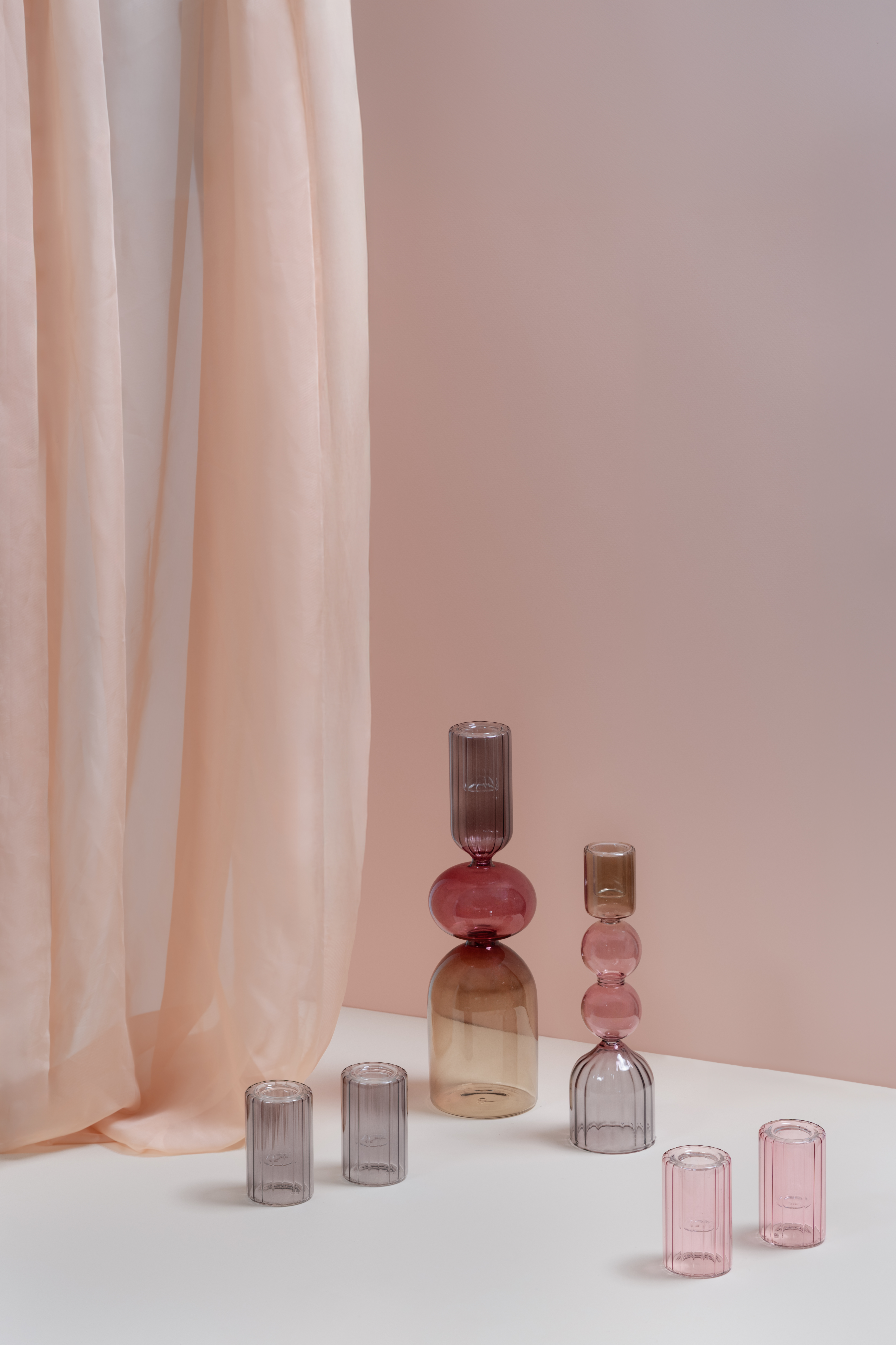 Het transparante borosilicaatglas geeft deze kandelaar een exclusieve en tijdloze uitstraling. Dit hoogwaardige materiaal laat het licht op betoverende wijze door de structuur spelen, waardoor er een dynamisch en levendig effect ontstaat. Of je deze kandelaar nu alleen gebruikt of combineert met andere lichtbronnen, de meerkleurige glasoppervlakte vangt en reflecteert het licht op een manier die jouw ruimte direct transformeert.