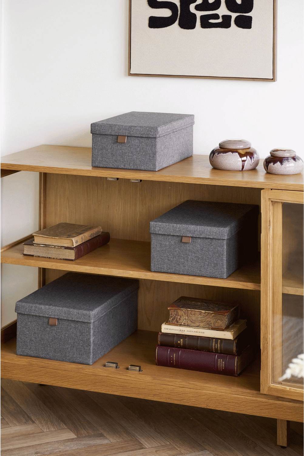 Met deze praktische opbergmanden van House Nordic breng je op een eenvoudige manier structuur in jouw interieur. De Noto-serie combineert functionaliteit met een strak Scandinavisch ontwerp en biedt een flexibele oplossing voor het organiseren van kleding, textiel en diverse spullen in kasten, op planken of onder je bed. Deze 3-delige set in donkergrijs past moeiteloos in vrijwel elke woonstijl en zorgt voor een rustige, uniforme uitstraling.Elk van de drie manden is vervaardigd uit 100% polyester, een duurzaam materiaal dat bestand is tegen dagelijks gebruik en tegelijkertijd eenvoudig schoon te houden. Polyester is niet alleen robuust maar ook flexibel, waardoor de manden hun vorm behouden en lang meegaan. De donkergrijze kleur is tijdloos en discreet, waardoor kleine gebruikssporen nauwelijks opvallen en de manden er netjes blijven uitzien.