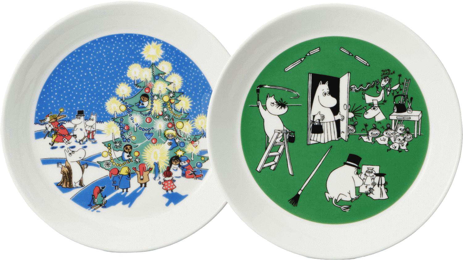 Met dit betoverende Moomin Arabia bordenset van 19 cm breng je de geliefde Moemin-wereld rechtstreeks naar jouw eettafel. Het set bevat twee prachtige borden die elk hun eigen unieke verhaal vertellen uit Tove Janssons magische universum, waarbij functionele alledaagse elegantie wordt gecombineerd met nostalgische verhalen die zowel kinderen als volwassen Moemin-liefhebbers zullen bekoren.Het kerstbord uit 2004 toont een hartverwarmende scène waarin de kleine Toefte zich verzamelen rond de kerstboom van de Moeminfamilie. Deze illustratie komt voort uit het humoristische verhaal waarin de Moeminfamilie kerst verkeerd begrijpt als een angstaanjagend karakter en zich daarom voorbereidt met overdadige decoraties, kaarsen en voedsel. Terwijl zij zich onder de tafel verstoppen in afwachting, zijn het juist de kleine Toefte die arriveren en hun feestelijke voorbereidingen bewonderen. Het motief is geïnspireerd op Tove Janssons aquarel en de novelle "De Dennenboom" uit 1962.