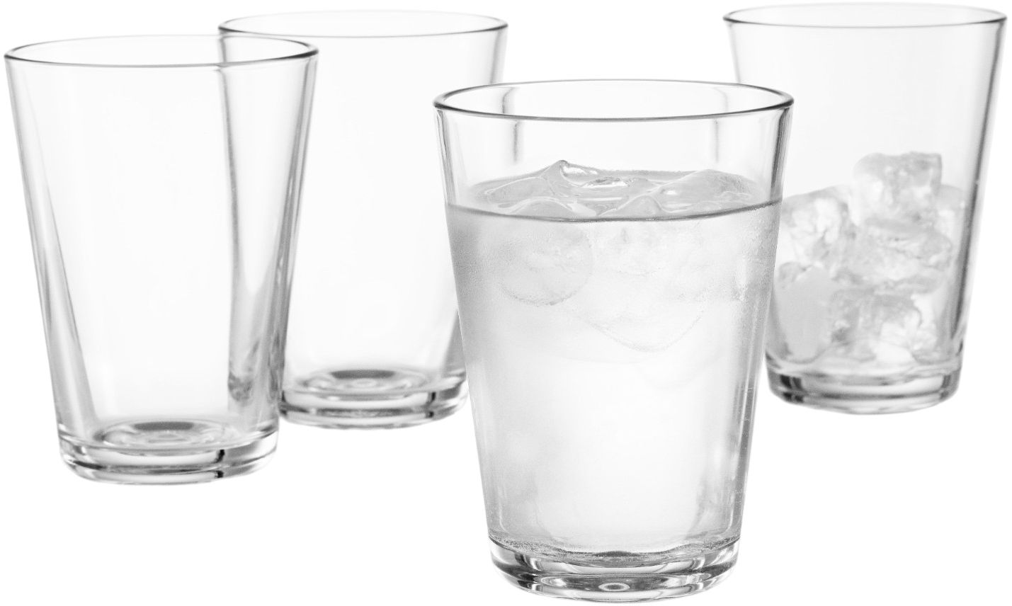 - Set bevat 4 identieke glazen, elk met een capaciteit van 38 cl
