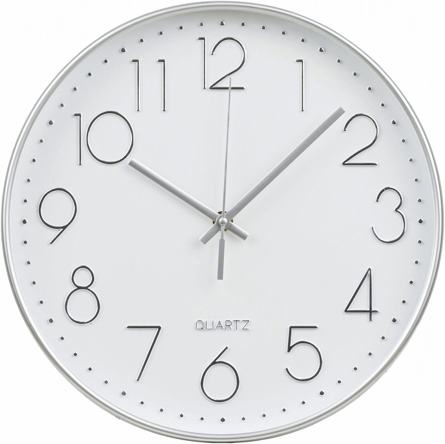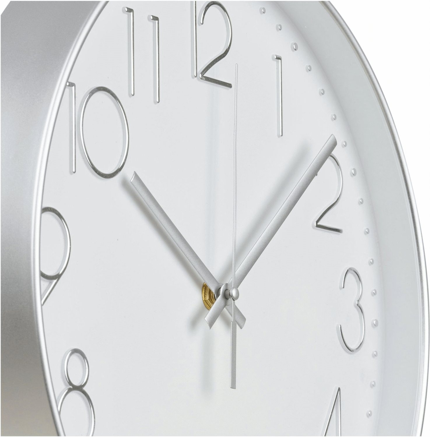 Met een diameter van 30 cm is deze klok groot genoeg om goed zichtbaar en leesbaar te zijn, maar tegelijkertijd discreet genoeg om de wand niet te overheersen. De slanke diepte van slechts 4,5 cm zorgt ervoor dat de klok vlak tegen de muur hangt en een gestroomlijnd effect creëert. Het ontwerp sluit naadloos aan bij verschillende interieurstijlen – van minimalistische en Scandinavische woningen tot meer klassieke of industriële omgevingen. De zilverkleurige afwerking maakt het eenvoudig om deze wandklok te combineren met andere interieurelementen, of je deze nu ophangt in de woonkamer, keuken, slaapkamer of op kantoor.