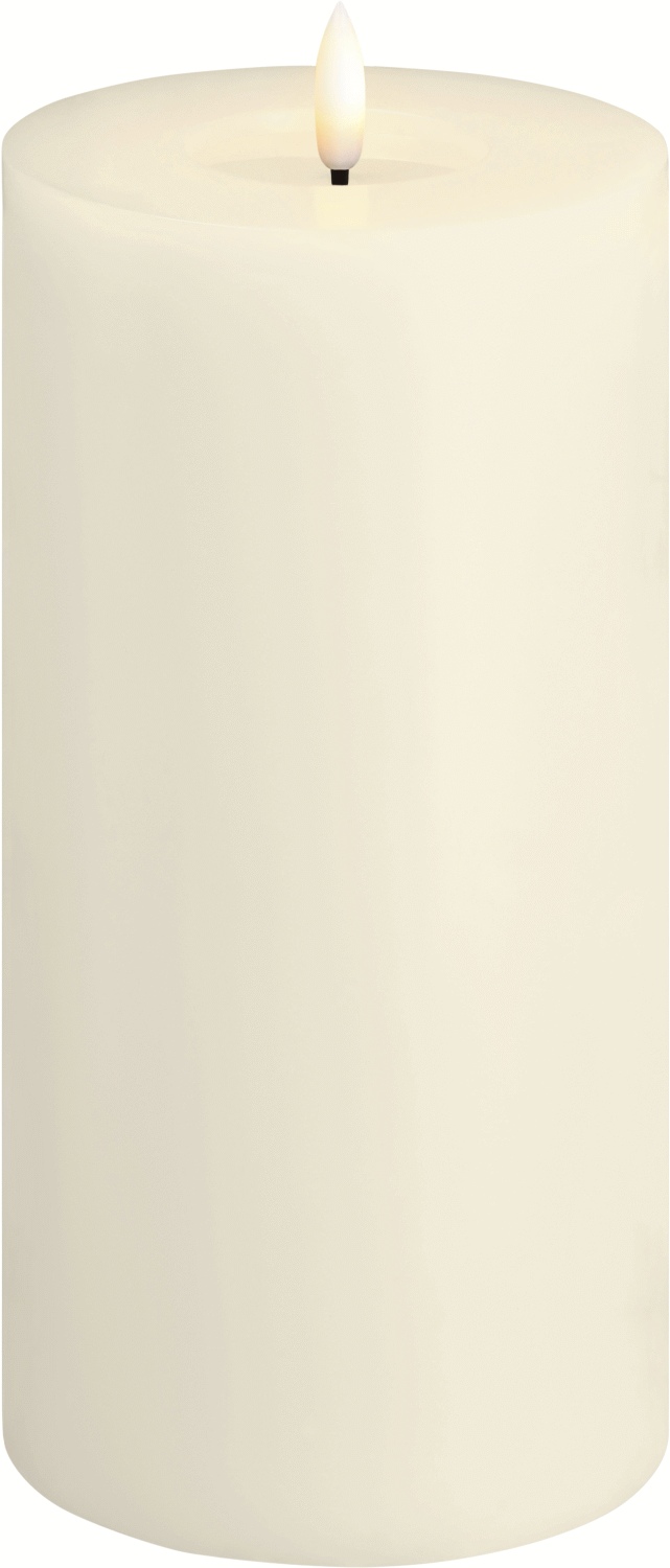 Deze stompkaars is vervaardigd van echte paraffinewas en voorzien van LED-technologie die zorgt voor een zachte en aangename gloed. Het realistische smelteffect geeft het product een bijzonder karakter en voegt zowel textuur als visueel leven toe aan je interieur. Met afmetingen van Ø9,9xH20 cm past deze kaars perfect op je eettafel, vensterbank of boekenplank, waar deze direct een stijlvol accent vormt. De elegante ivory-tint past naadloos in vrijwel elke woonstijl en laat zich prachtig combineren met andere kaarsen uit dezelfde serie voor een harmonieus geheel.