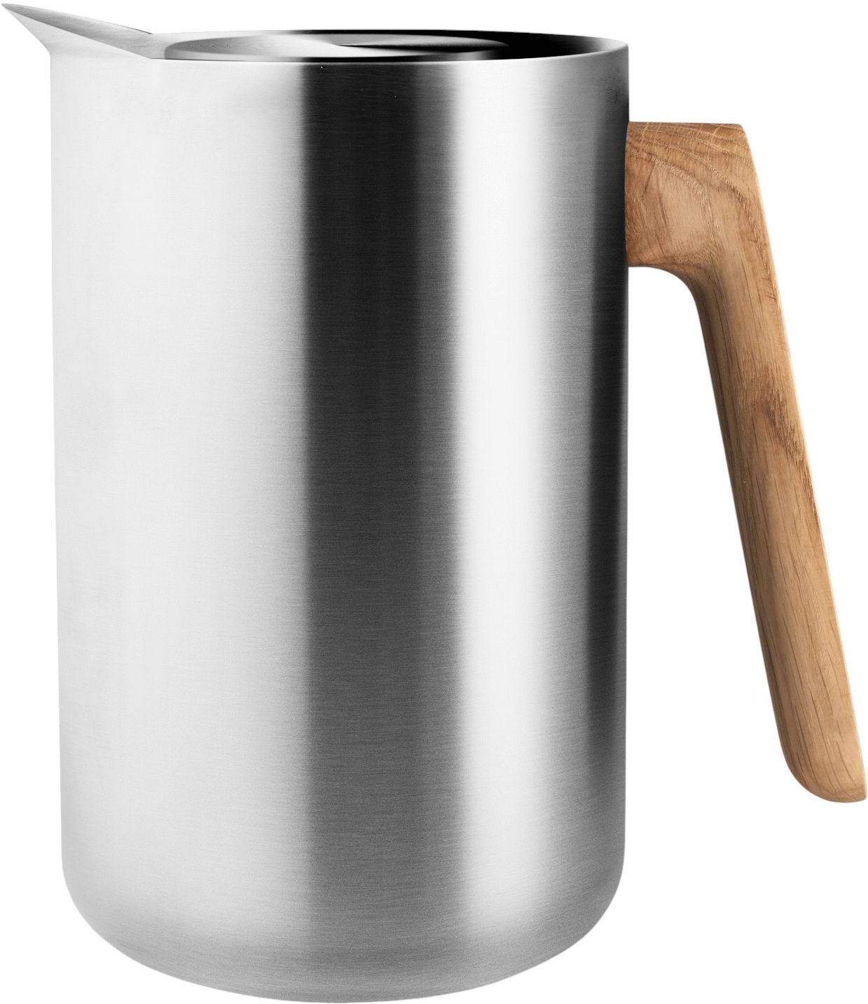 Met deze prachtige thermoskan van Eva Solo breng je Scandinavische elegantie en praktische functionaliteit samen in jouw keuken. De Nordic Kitchen serie staat bekend om zijn tijdloze minimalisme, en deze thermoskan van 1 liter is daarvan een perfect voorbeeld. Het geborstelde roestvrijstalen design wordt prachtig geaccentueerd door het warme eikenhouten handvat, wat zorgt voor een comfortabele en veilige grip tijdens het serveren.Deze thermoskan onderscheidt zich door zijn geavanceerde 3-laags vacuüm staalinzet die de temperatuur van jouw koffie of thee urenlang perfect behoudt. Het innovatieve ontwerp zorgt er niet alleen voor dat je drankjes optimaal warm blijven, maar geeft de kan ook een robuuste en slagvaste constructie die bestand is tegen dagelijks gebruik in drukke huishoudens.