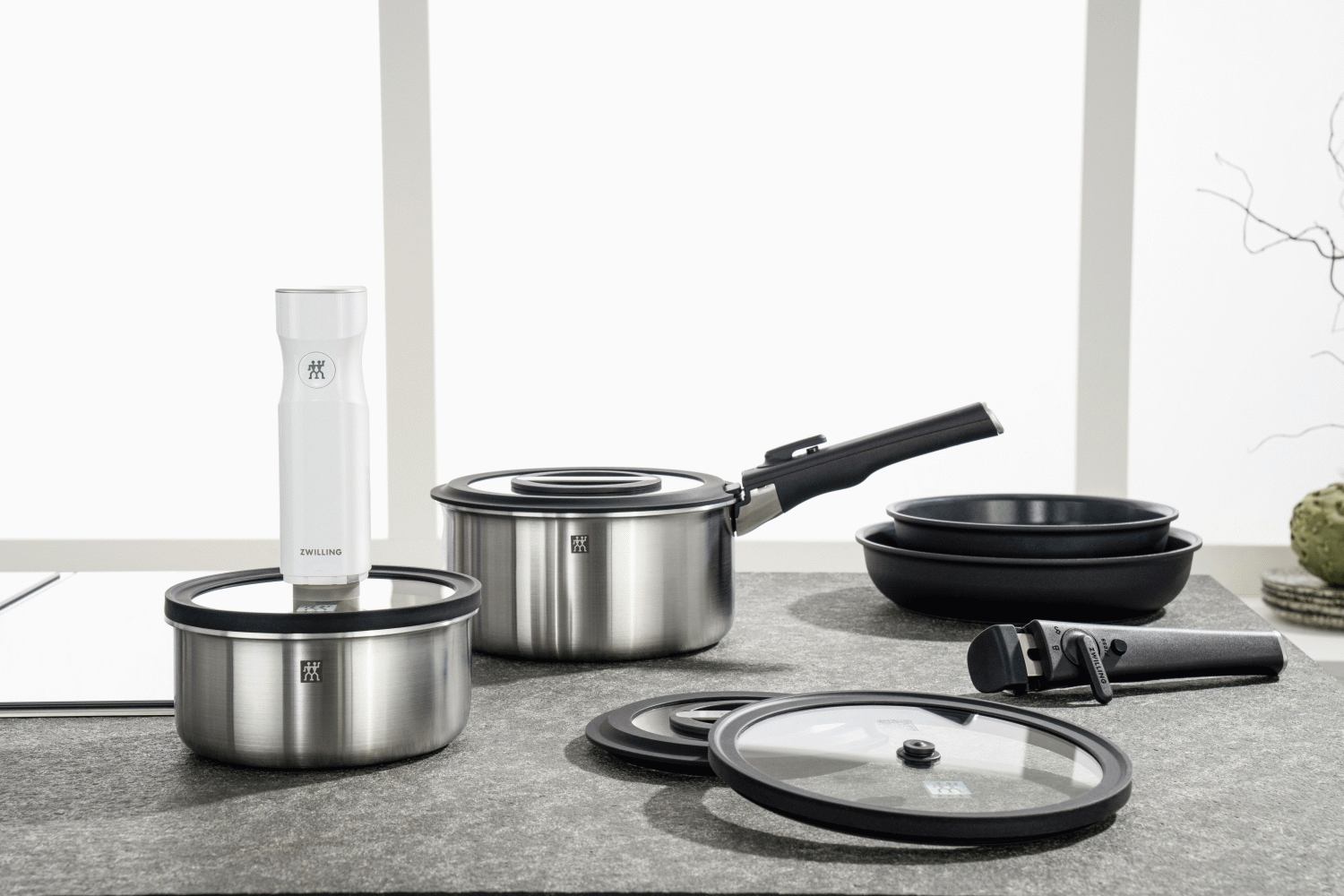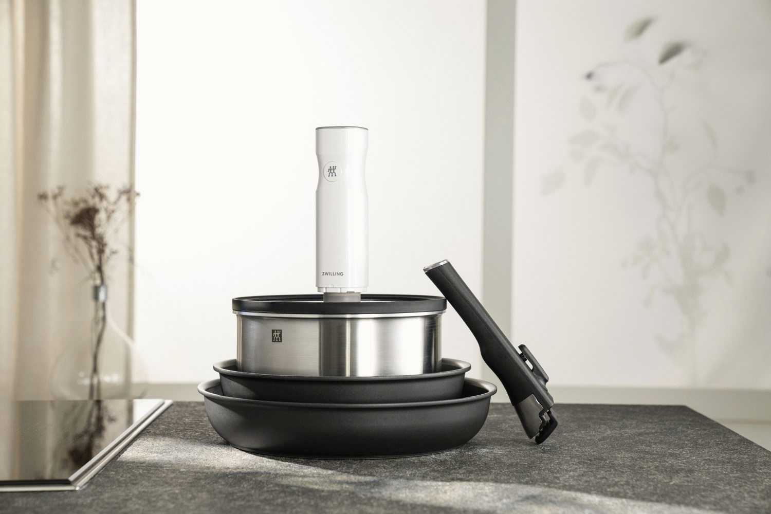 Het ZWILLING UNLOCK All-in-One systeem combineert praktische functionaliteit met een intelligent ontwerp in één compleet opbergsysteem. Met de twee vacuümdeksels van 16 en 20 cm kunt u koken, serveren, bewaren en warmhouden – zonder gedoe met het overvullen van verschillende bakjes. De flexibele siliconenring garandeert een luchtdichte afsluiting die perfect past op de bijbehorende UNLOCK kommen, potten en pannen. Deze precieze pasvorm is cruciaal voor de efficiëntie van het systeem en beschermt uw ingrediënten en gerechten optimaal.In combinatie met de FRESH & SAVE pomp kunt u uw voedsel vacuüm verpakken en tot wel vijf keer langer vers houden dan met conventionele opslag zonder vacuüm. Dit maakt het systeem ideaal voor het bereiden van maaltijden en de dagelijkse maaltijdplanning, omdat u meerdere porties tegelijk kunt bereiden en ruimte bespaart. De deksels zijn vaatwasmachinebestendig en gemakkelijk schoon te maken. Deze veelzijdigheid maakt het UNLOCK-systeem een praktische oplossing voor moderne keukens, waar ruimte en functionaliteit voorop staan. De twee deksels in verschillende maten stellen u in staat de opslag aan te passen aan uw behoeften – of het nu gaat om restjes van de avondmaaltijd, voorbereide ingrediënten voor ontbijtgerechten of porties voor de lunch.