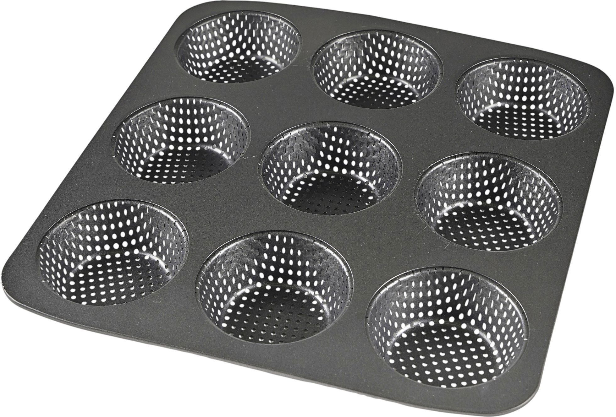 Met deze professionele broodjesvorm van Blomsterberg bak je voortaan perfecte broodjes met een goudbruine, knapperige korst en een heerlijk zachte binnenkant. De doordachte 9-holes constructie in duurzaam carbon staal zorgt voor een optimale warmteverdeling, waardoor elk broodje gelijkmatig wordt gebakken.Het carbon staal staat bekend om zijn uitstekende warmtegeleidende eigenschappen en zorgt ervoor dat jouw broodjes die perfecte goudbruine kleur krijgen die je van professionele bakkerijen kent. De strategisch geplaatste ventilatiegaten in de vorm laten stoom ontsnappen tijdens het bakproces, wat resulteert in die ideale textuur - knapperig aan de buitenkant en luchtig zacht van binnen.