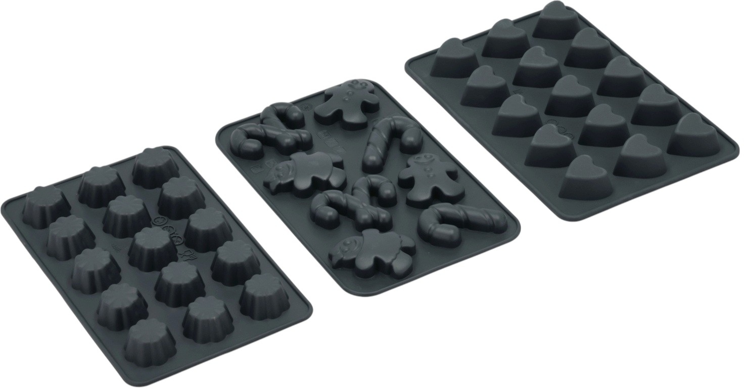 Met deze elegante chokoladevormen van Blomsterberg breng je de kunst van chocolade maken naar jouw eigen keuken. Het 3-delige vormset in stijlvolle grijze silicone opent een wereld van creatieve mogelijkheden voor het maken van prachtige, zelfgemaakte chocolaatjes die perfect passen bij elke gelegenheid.Dit veelzijdige vormset stelt je in staat om maar liefst 38 verschillende chocoladefiguren te creëren in drie charmante thema's. Je kunt 15 delicate bloemenmotieven maken die perfect zijn voor lente- en zomercelebraties, 15 romantische hartvormige chocolaatjes voor Valentijnsdag of gewoon om je liefde te tonen, en 8 betoverende kerstmotieven die jouw feestdagen extra speciaal maken.