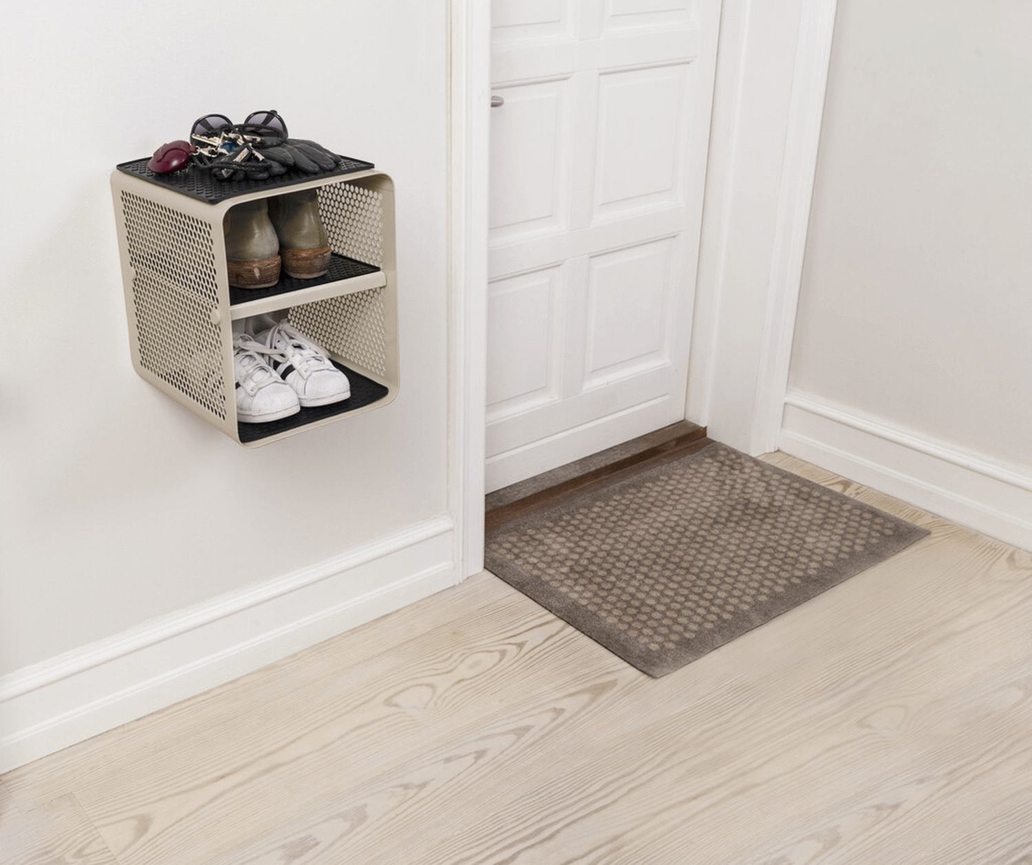 Het zandkleurige schoenenrek van Tica Copenhagen brengt zijn doordachte constructie, functioneel ontwerp en stijlvolle uitstraling naar uw hal. Dit wandschoenenrek is ideaal voor moderne woningen waar esthetiek en praktische opbergruimte belangrijk zijn. Met een compacte breedte van slechts 27 cm is het perfect voor smalle gangen en entrees, waar de ruimte optimaal benut moet worden zonder in te leveren op stijl. Het rek kan zo gemonteerd worden dat de planken en de zijkanten zichtbaar zijn - bijzonder praktisch in smalle doorgangen. De metalen constructie garandeert duurzaamheid en een moderne look die perfect past bij de Scandinavische designstijl van Tica Copenhagen. Deze matten voorkomen het lekken van vloeistoffen en beschermen zowel uw schoenen als de vloer tegen vuil en vocht. Het rek is dus een praktische oplossing voor het dagelijks leven, waar functionaliteit en design harmonieus samenkomen. De kleur is neutraal genoeg om in de meeste woningen te passen en de ruimte een rustige uitstraling te geven. De montage is ongecompliceerd en eenvoudig, zodat u de plank snel kunt bevestigen en kunt genieten van de voordelen van een goed georganiseerde vloer.Producthoogtepunten: